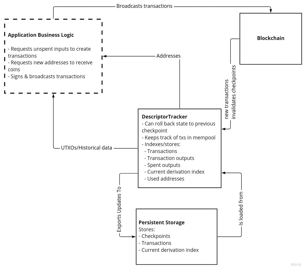 can't create simplifying abstractions and tools around these primitives to cover common policies. I hope we can implement Wallet with DescriptorTrackers internally.